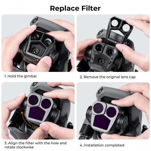 - * 【DJI Mavic 3 Pro ND -suodatinsarja】 4 kpl ND8, ND16, ND32, ND64 suodattimet, jotka on suunniteltu erityisesti DJI Mavic 3 Pro.C:lle