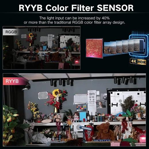 RYYB-värisuodatinryhmäsuunnittelu, jossa on suuri aukko f / 1.9, ISO-alue 100 ~ 6400 tarjoaa erinomaiset kohinanvaimennusominaisuudet ja tehon tuottaa vaivattomasti laadukkaita kuvia heikossa valaistuksessa.