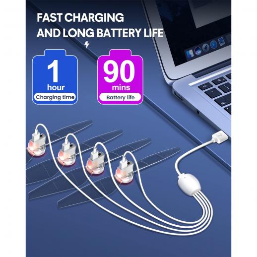 - * 【Ladattava akku】LED-potkuri on ladattava. Toiminto on kytkeä USB-potkurin latausporttiin ja kytkeä pää tietokoneeseen, matkapuhelimees tai virtapankkiin. Latausaika on noin 1 tunti, akun käyttöaika: yli 90 minuuttia.