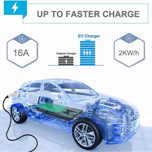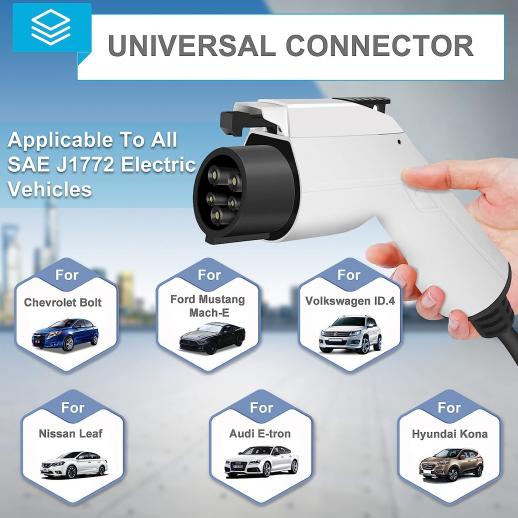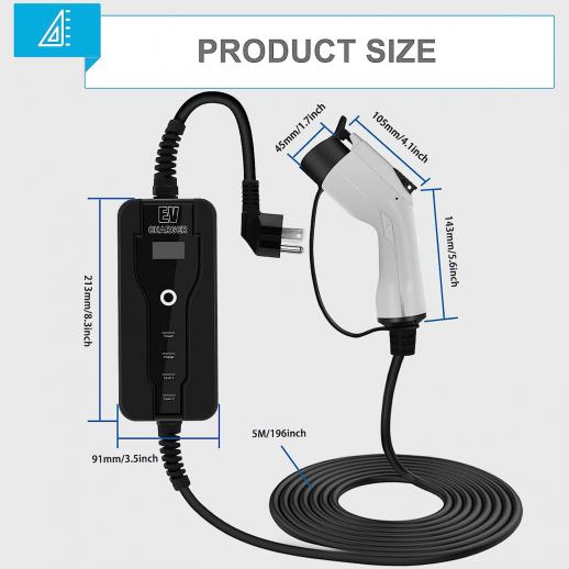 • * Tyyppi 1 laturin maksimiteho on 110-240V, 8/10/13/16A ja 3,84 kW, mikäa sähköajoneuvojen nopeamman latauksen;. Standardin J1772 latauspistokkeen avulla laturi on kaikkien sähköajoneuneiden ja Plug-in hybridin kanssa;