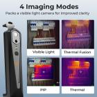 Lämpökameramme mobiililaitteille lisää erityisesti 640x480 pikselin näkyvän valon kameran, joka tarjoaa näkyvän valon näkymän, lämpönäkymän, fuusionäkymän (päällekkäiset lämpö- ja visuaaliset kuvat samanaikaisesti) ja PIP-näkymän (kuva kuvassa). Voit helposti tunnistaa ja ymmärtää lämpötilan vaihtelujen kontekstin, jolloin ongelmien tai poikkeamien tunnistaminen eri kohtauksissa on helpompaa.