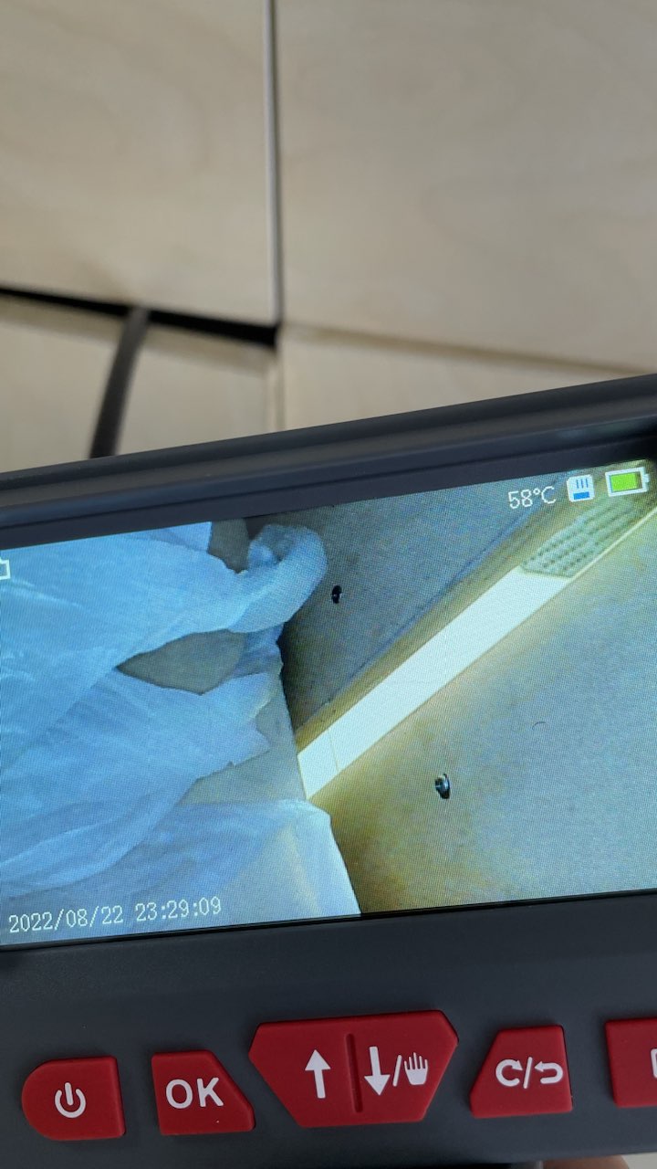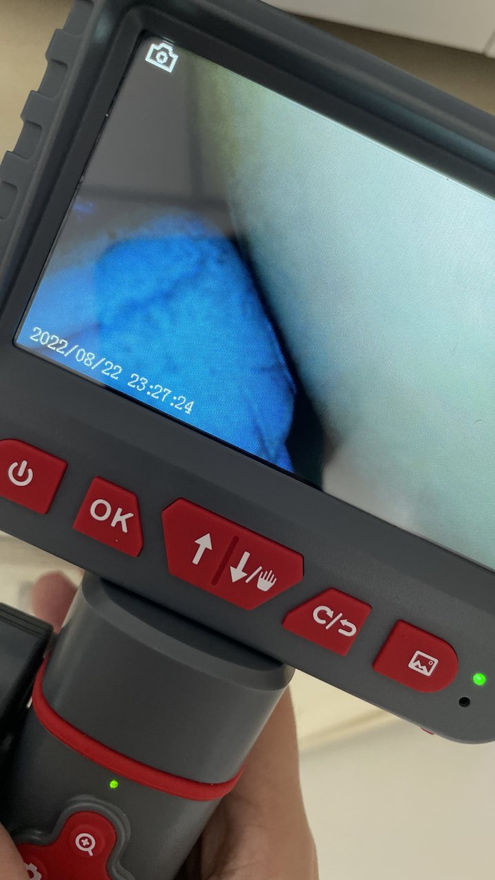 Wir haben kürzlich eine Küchenrenovierung durchgeführt und alle unsere Küchengeräte einschließlich der Dunstabzugshaube ersetzt. Die neue Dunstabzugshaube, die wir gekauft haben, war im Vergleich zu unserer alten Dunstabzugshaube viel kürzer und wir können die Öffnung unter der neuen Dunstabzugshaube für die Entlüftung sehen, die wir vorher bei der alten Dunstabzugshaube nicht gesehen haben. Ich beschloss, dieses artikulierende Endoskop zu verwenden, um zu überprüfen, was sich hinter der Küchenwand befindet, und bemerkte, dass aufgrund eines Wasserlecks vom Dach ein stark verrotteter Holzrahmen vorhanden war. Wir haben sofort einen Auftragnehmer mit der Reparatur des Lecks beauftragt, aber die Reparatur hätte einen großen Schaden und hohe Kosten verursachen können, wenn wir Jahre später nichts davon gewusst hätten. Ich bin mit diesem Endoskop in vielerlei Hinsicht sehr zufrieden.