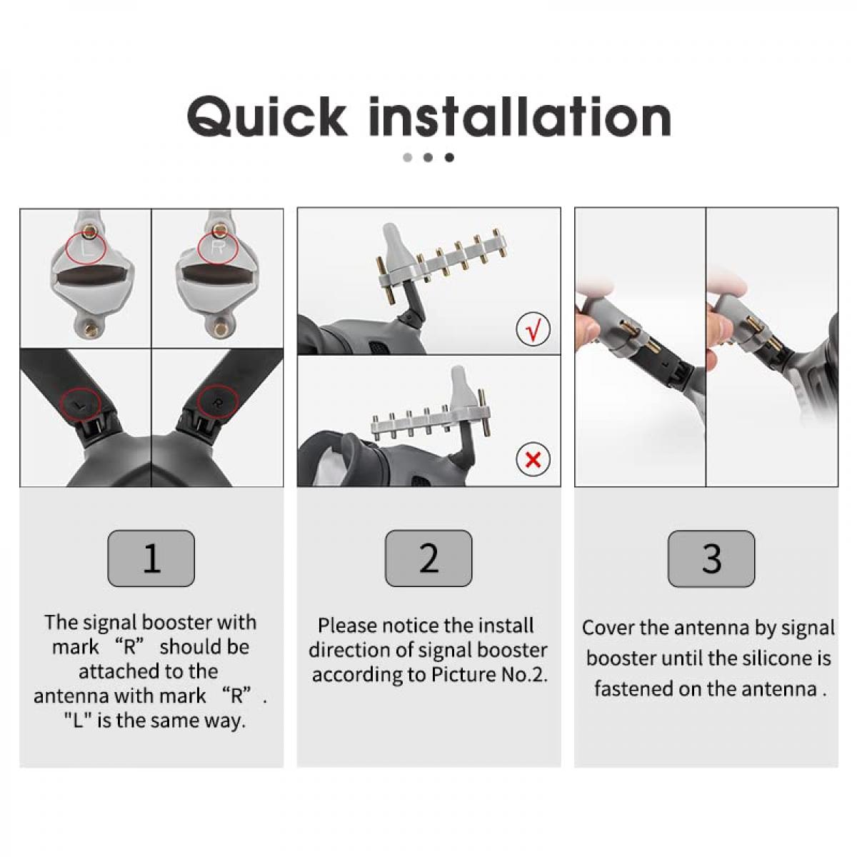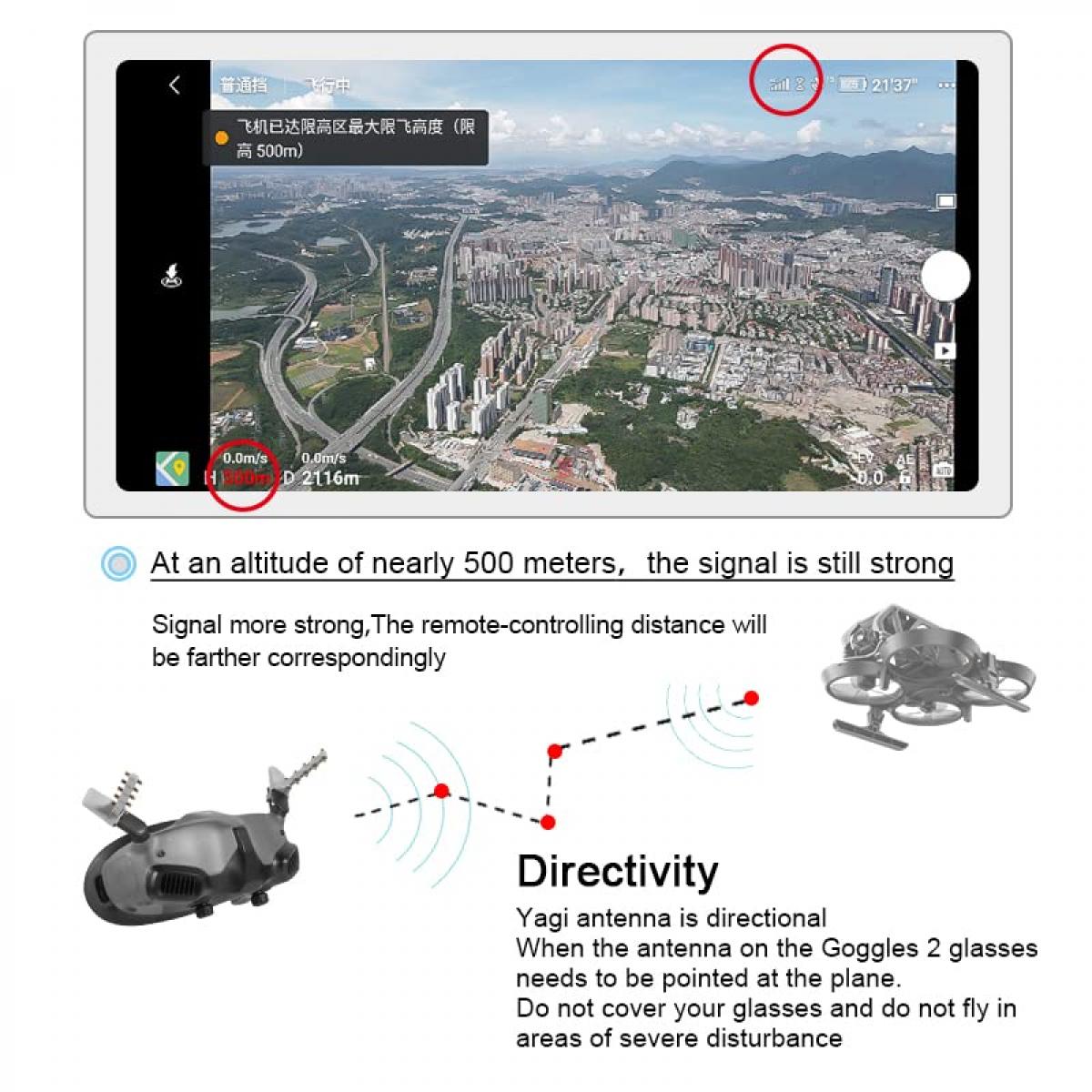- * Paranna antennisignaali ja laajenna kauko-ohjaimen etäisyys samalla signaalin häiriövoimakkuudella lentoympäristössä lentomatkaa voidaan lisätä 50-500 metriä