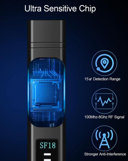 • * [Monikäyttöinen yhdelle koneelle] 4 tilaa: langattoman RF-signaalin tunnistus, UG-magneettikentän signaalin tunnistus, kameran tunnistus, taskulampun lisävalaistus. Kun olet huolissasi yksityisyyden loukkauksista julkisissa kylpyhuoneissa, hotelleissa, loma-asunnoissa, AirBnB: ssä, pukuhuoneissa, virkistyshuoneissa, pukuhuoneissa, liiketapaamisissa, koulukokeissa, vakoojailmaisimemme auttaa sinua tuntemaan olosi turvallisemmin;