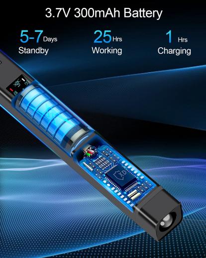3.7V 300mVahva akku, superakun kesto, lataaminen kestää vain 1 tunnin ja se voi toimia 5-7 tuntia, joten sinun ei tarvitse suorittaa akun kestosta.