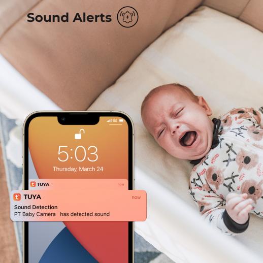 Kun vauvasi tarvitsee sinua, Tuya APP antaa sinulle heti äänen hälytystiedot edistyneen äänentunnistustekniikan avulla