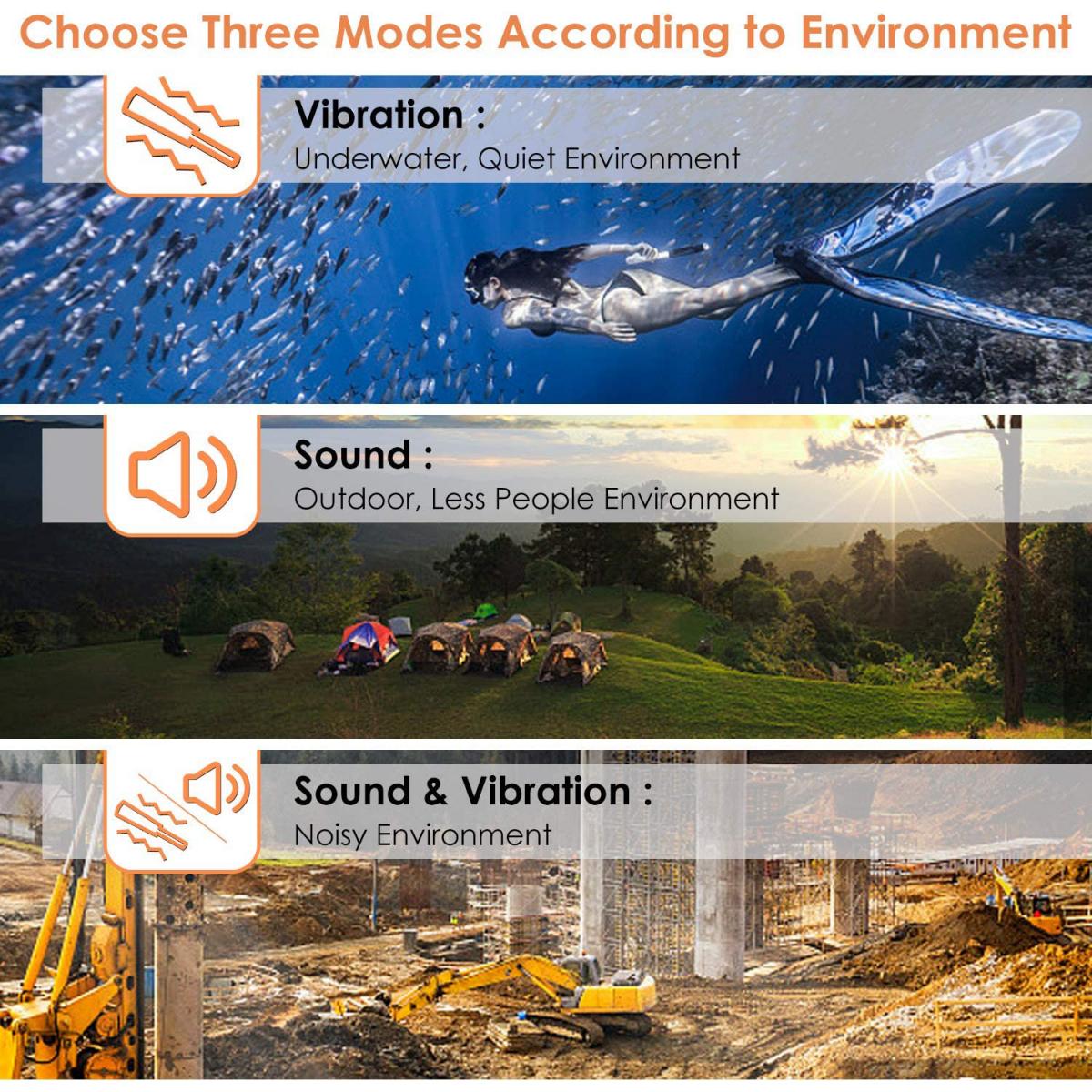 - * 360 ° anturi ja kolme valinnaista tilaa: neulametallin ilmaisin 360 ° anturin suunnittelu, laajemmalla havaitsemisaluetta ja vähentämällä kohteen menetystä. Kolme tilaa - tärinätila (mykis äänitila), tärin ja äänitilan muuntaminen, sopii hiljaisiin, meluisiin, vedenalaisiin ja suureen ympäristöön;