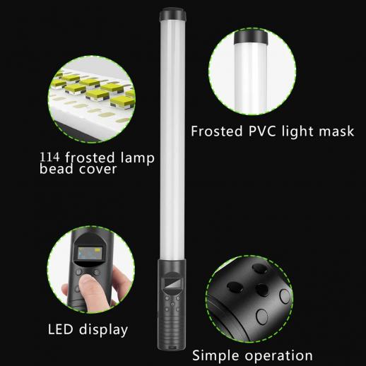 Kädessä pidettävä valokuvausvalotikku, kaksivärinen lämpötila, 2000 mAh ladattava akku, RGB LED -videovalotikku, portaaton himmennysputkivalo, 2500K-8500K, kirkkaus 0-100 %, soveltuu suoratoistoon, videoneuvotteluihin, YouTube, TikTok, meikki