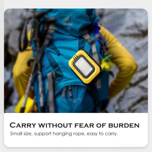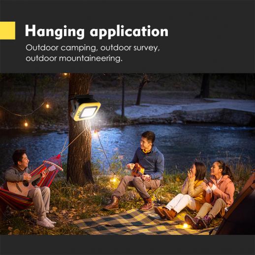 - * [Ripustus- ja pohjamagneetin suunnittelu] Ripustettavan muotoilun ja koukun avulla voit helposti ripustaa sen telttaan, 130 astetta kääntyvä kiinnike, voit valita sopivamman valaistuskulman. Jalustan pohjassa oleva vahva magneetti, joka kiinnittää metallipintaan ja jota voidaan käyttää hätävalaistuksena yöhuoltoon.