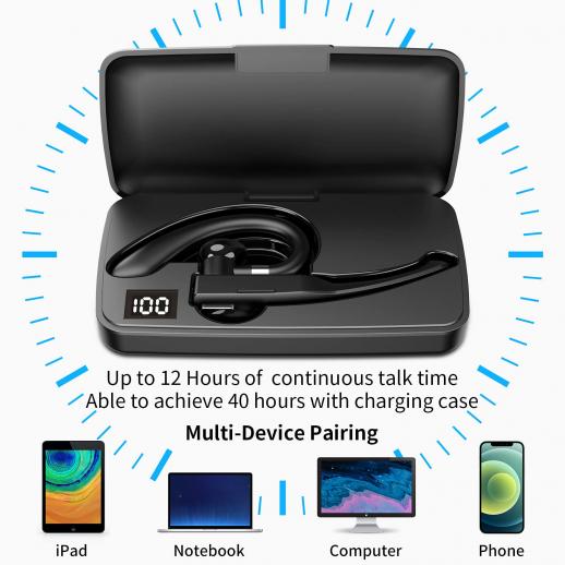 - * 【Latauskotelo LED-näytöllä, pitkä valmiusaika】Sisäänrakennettu korkealaatuinen akku, 1,5 tunnin lataus voi jopa 12 tuntia jatkuvaa puheaikaa. Latauskotelon avulla se voi saavuttaa 120 tunnin ajan valmiusajan. Tätä bluetooth-kuuloketta varten niille, jotka matkustavat pitkiä matkoja. Korvatulpat ovat hyviä ja helppoja kuljettaa. Voit ladata Bluetooth-kuulokkeet TYPE-C-latauskaapelilla. (Huomautus: Toistoaika voi vaihdella toiston ja toiston äänenvoimakkuuden mukaan.