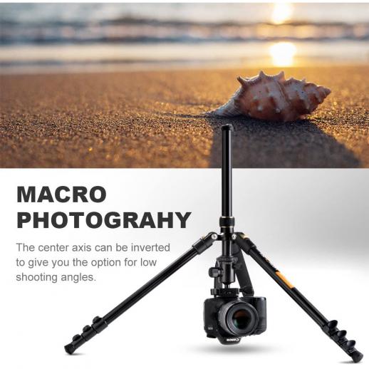 - * 【360° Kuvauskulma】- Kameran jalustalla on metallinen pallopää ja poikittainen keskipylväs, joten se mahdollistaa 360 asteen kuvauskulman ja toteuttaa panoraamakuvauksen ja makrokuvauksen.