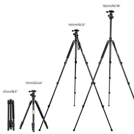 - * 【Kompakti ja kannettava】 Kompaktikamerajalusta on valmistettu laadukkaasta sotilaallisesta magnesium-alumiiniseoksesta, jossa on korroosionkestävyys. Pallopäällä varustettu jalusta painaa vain 2.79 paunaa, se voi olla 180 ° refleksinen ja taitettu 16.5 '': een, helppo laittaa reppuun tai mukana toimitettuun matkalaukkuun matkoilla.