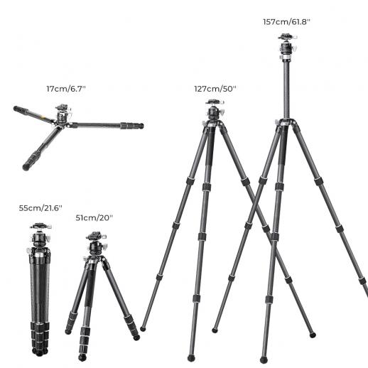 - * 【Helppo ja nopea jalkojentusjärjestelmä】 Hiilikuitujalusta on varustettu kierrelukitusllä, jonka avulla voit kiinnittää tai löysätä jalkoja ja säätää lukituksen korkeutta sekunneissa, nopea ja helppo käyttää millä tahansa kädellä.