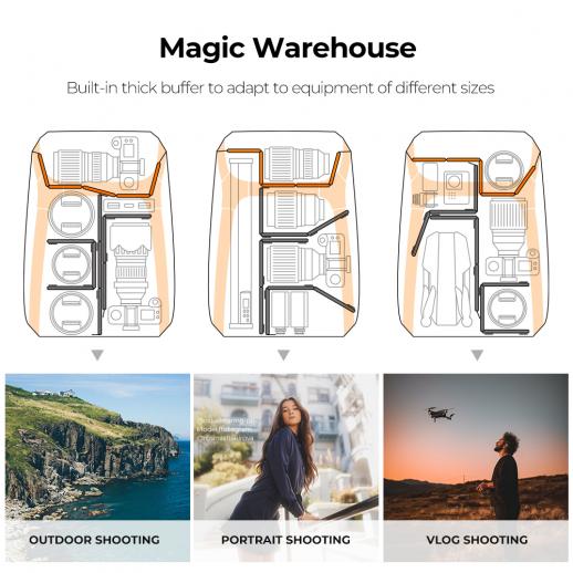 - * 【Mukautettavat lokerot ja pikakäyttö】 Irrotettavat mukautetut pehmustetut jakajat voivat valita kameran koon ja kantamiesi kameratarvikkeiden vaihtoehdon mukaan kameran ja lisävarusteiden suojaavat paremmin.