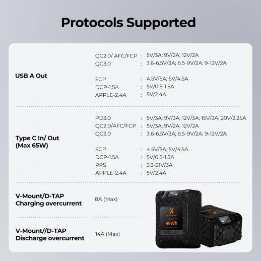 - * 【65 W:n kaksisuuntainen PD-pikalataus】 Se voi ladata V-portin akun BP:n, D-tapin, Type C -portin kautta, tukee moniprotokollasta pikalatausta (PD/QC/SCP/PPS/APPLE-2.4A jne. ), ja tukee jopa 65 W:n suuritehoista USB-C kaksisuuntaista PD-pikalatausta, jota voidaan käyttää älypuhelimen, tabletin tai kannettavan tietokoneen lataamiseen.