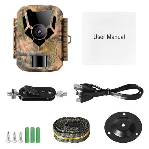 1xTrail-kamera 1x hihna 1x USB-kaapeli 1x puukiinnitys 1x käyttöopas 3× ruuvit