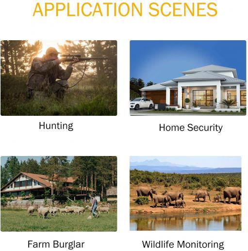 Soveltuu maatilojen seurantaan / metsästykseen / kodin turvallisuuteen / luonnonvaraisten eläinten seurantaan jne.