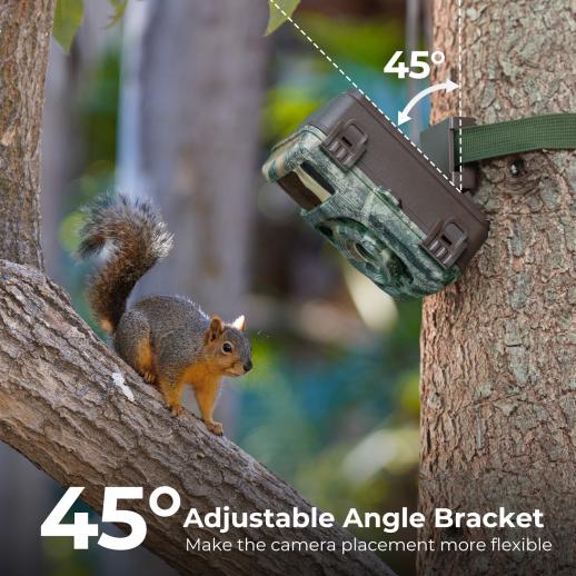 Instead of the traditional fixing method, the camera has an adjustable Angle mount, which allows you to adjust the Angle of view according to actual use. The jagged design also allows the camera to mount more firmly in the tree