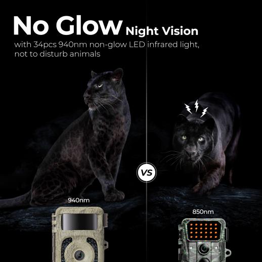 With 34 high-quality 9400nm glow-free infrared leds, an excellent CMOS image sensor and a powerful optical lens, this waterproof night vision tracking camera does not disturb animals at night, while capturing clearer and more vivid moments of nocturnal wildlife activity.