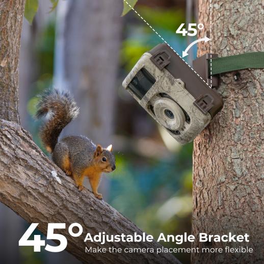 Instead of the traditional fixing method, the camera has an adjustable Angle mount, which allows you to adjust the Angle of view according to actual use. The jagged design also allows the camera to mount more firmly in the tree