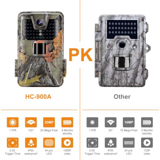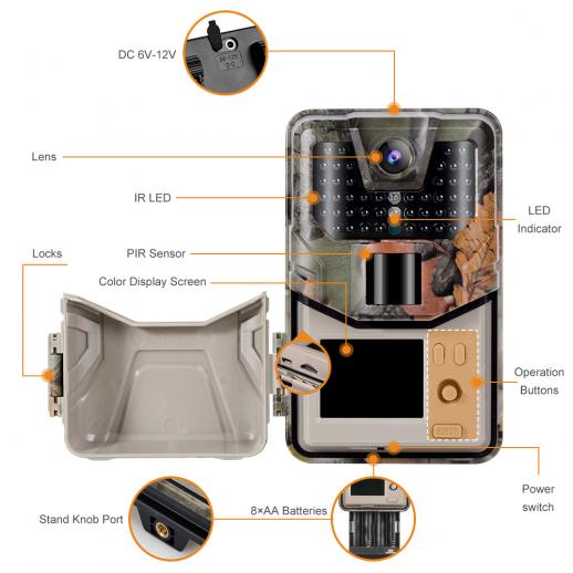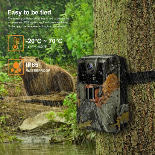 - * 【IP65 vedenpitävä tukeva kotelo】IP65-vesitiiviin, pölynkestävän, pisarankestävän muovikotelomme ansiosta metsästyskameramme on riittävän kestävä kestämään karua työympäristöä, kuten aavikkoa tai sademetsää, jonka lämpötila on -20-71 °C, mikä on välttämätön tae pitkäkestoiselle käyttöiälle.