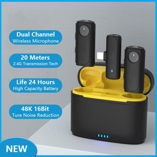 J20 One-two Langaton Lavalier-mikrofonin latauskotelo, yhden kosketuksen melunvaimennus, Youtube, tallennus, videobloggaus, Facebook Live, Type-C, Lightning, kameraliitäntä