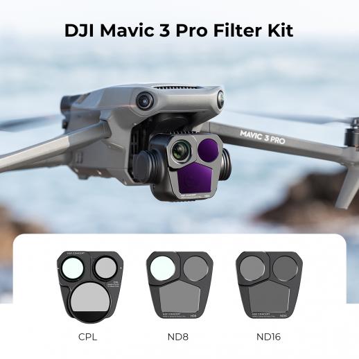 • * 【Mavic 3 Pro -suodattimet】CPL, ND8, ND16 suodatinsarja, joka on yhteensopiva DJI Mavic 3 Pron kanssa.