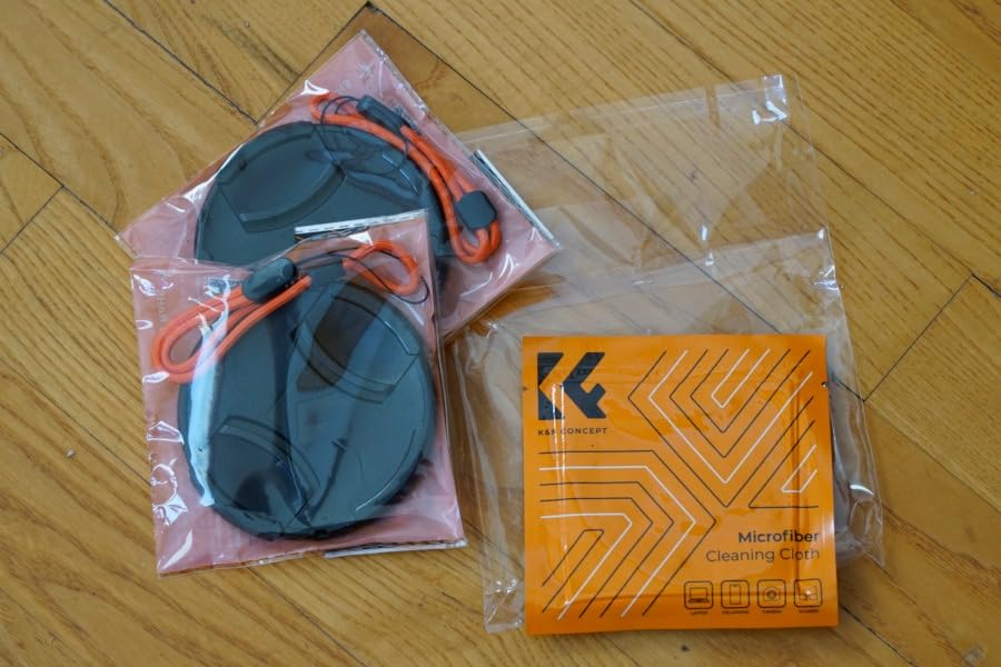 Minulla on ollut objektiiveja, joille olen ostanut uudet linssisuojukset ja joilla on ollut vaikeuksia pysyä paikoillaan – näiden kanssa ei ollut samaa ongelmaa. Ostin K&F Concept 82 mm:n etusuojukset varaosiksi. Useimmat omistamistani objektiiveista ovat 82 mm:n, ja olen kadottanut niitä melko monta, koska minulla oli joitakin varusteita vanhoista ajoista. Ajattelin, että olisi hyvä pitää muutama vara-objektiivi käsillä. Näissä on rannehihnat, jotka kiinnitetään linssisuojukseen. Tarkoituksena on kuitenkin, että ne eivät mene ranteen ympärille, vaan linssin ympärille – mikä estää ehdottomasti sen katoamisen. Lisäbonuksena on, että pakkaus tulee suljetussa pakkauksessa mikrokuituisen puhdistusliinan kanssa. Jos tarvitset uuden linssisuojuksen tai muutaman varasuojan varmuuden vuoksi, nämä K&F Conceptin linssisuojukset ovat hyvin tehtyjä ja sopivat täydellisesti naurattamatta. Niiden mukana tulee linssihihna, jolla ne kiinnitetään linssiin – et voi mennä vikaan!