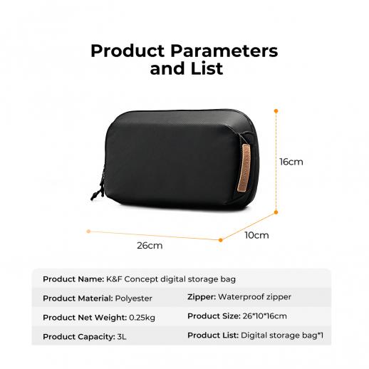 K&F Concept Digital Organizer Monipuolinen laukku matkapuhelimien, kaapeleiden, laturien, kuulokkeiden ja muiden henkilökohtaisten tavaroiden kätevään säilytykseen