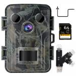1080P 20MP Wildlife Trail kamera Night Vision 0.2S Trigger Motion Aktivoitu IP66 vedenpitävä, 64G SD-kortti, Tree Spike, kortinlukija