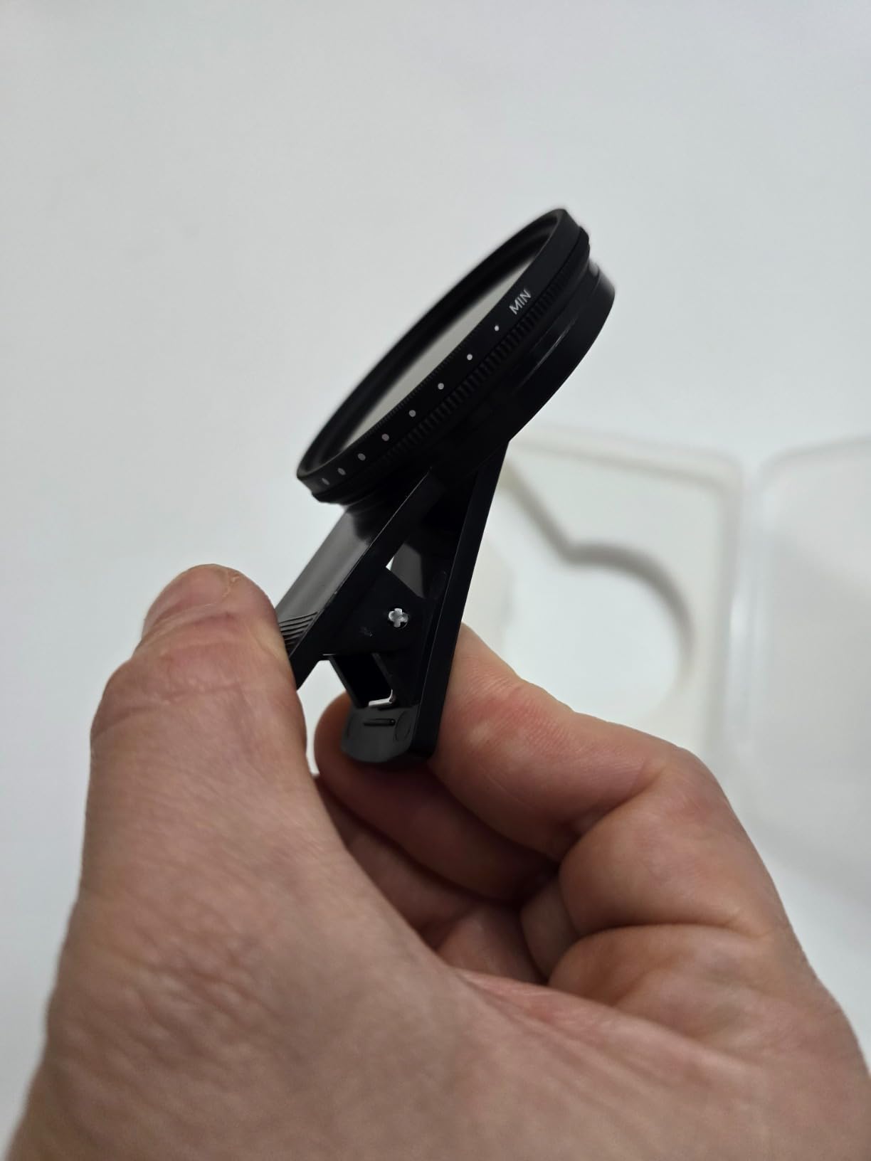 52 mm:n ND2-400-puhelimen kameran linssisuodin, K&F Concept ND -suodin, yhteensopiva iPhone 15 14 13 12 11 -älypuhelimien kanssa. Tämä tuote toimitetaan pahvilaatikossa. Laatikon sisällä on ND2-400-puhelimen linssi kiinnitettynä puristimeen ja liinaan (oranssissa pussissa). Tämä linssi voidaan kiinnittää mihin tahansa yhteensopivaan 52 mm:n objektiiviin (ja mikä tahansa jo omistamasi yhteensopiva linssi voidaan kiinnittää puristimeen), mikä on mielestäni loistava muotoilu. Arvosteluhetkellä tuotteen hinta on 22,49 €; hinta on erittäin kohtuullinen, varsinkin budjettitietoiselle valokuvaajalle. Siinä on rengas, jonka avulla voit muuttaa tulevan valon määrää (tummentaaksesi tai kirkastaaksesi sitä), ja tämä on erityisen hyödyllistä matkapuhelimille, sillä voit muuttaa kuviesi kirkkautta/tummuutta editorin käyttämisen sijaan. Tuote on erittäin hyvin tehty, lasi on korkealaatuista ja sitä voidaan käyttää mihin tahansa muuhunkin kuin mukana tulevaan kiinnitykseen (muihin 52 mm:n kameran linsseihin). Suosittelen ehdottomasti tätä tuotetta.